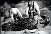 Exemples : traumatismes liés aux chutes et aux problèmes de contention prolongéé dans les harnais.